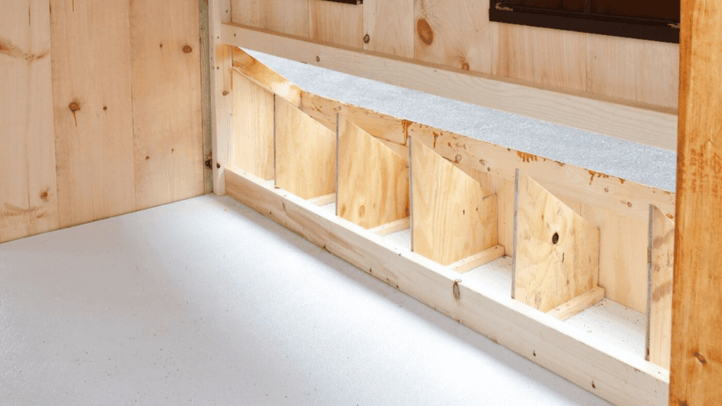 - Proper roosting perches and access to a minimum of one nesting box for every four to five hens.